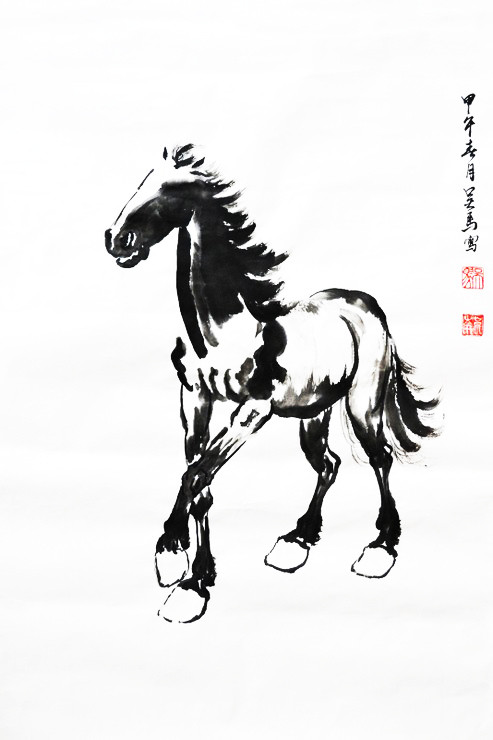 吴马先生自幼临习《芥子园画谱》,练就了扎实的中国书画功底,并且多年来潜心专研中国古代及近现代诸大家山水、人物、花鸟技法及绘画理论。其中,元明清黄公望、沈周、文征明、唐寅、仇英、董其昌、石涛、王时敏、王翚、王原祁等诸山水名家对于吴马山水画的学习、创作产生了较大的影响。而近代吴昌硕、齐白石、徐悲鸿、张大千等诸家在花鸟、人物、动物等方面的笔墨技法、艺术表现,使得吴马从传统笔墨继承向笔墨创新、艺术风格创新、表现手段创新等方面有了更为深层次的认知。经过多年文化修炼及法度修炼,以及众多导师指点,吴马形成了较为独立的中国画艺术价值观和审美观,以及艺术创作理念和追求。吴马的山水画、花鸟、动物画笔墨精到、气韵生动、格调高雅、意境深远,富有人文内涵。