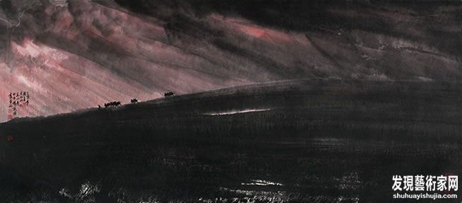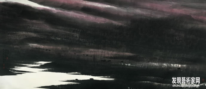 4.写实的观察与写意表现的统一,他的画看着是写意的,奔放的,大笔头的。激情并发的,一气贯注的。但外写而内工,豪放而不脱离物象。他的观察方式,表现方式是写实的,注重体面、光暗、空间,属于美院、徐悲鸿、李可染的路子,写实的观念、写意的笔墨,又加上了一气呵成的书写性。他在写实与写意、客观与主观、传统与现代之间实践了一种新的联系,能在写实的形式中表现出饱满的激情,是对中西结合的山水画的发展,从而展现出中国画那神秘而灵动的气韵。